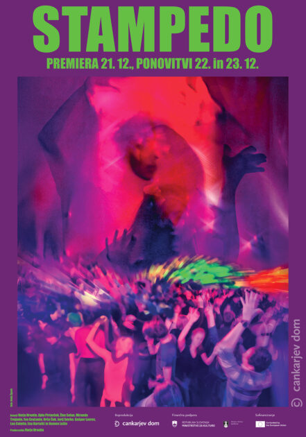Stampedo je dokumentarno-interaktivna uprizoritev Varje Hrvatin, ki skozi resnične primere človeških stampedov odpira vprašanje varnosti kot temeljne pravice. Predstava razgrinja, kako finančni interesi, masovna panika in družbene neenakosti vplivajo na tveganje za nesreče, ter premišlja odgovornost države, institucij in posameznika. Z združevanjem dokumentarnega gradiva in interaktivnih postopkov preizprašuje naše sodobno drvenje, kolektivno vedenje in točko, kjer bi se morali ustaviti.